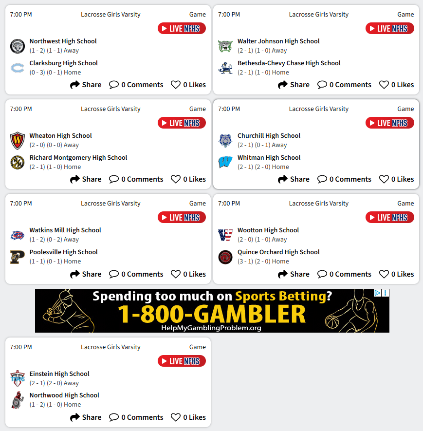 Just five total games were played by Montgomery County boys lacrosse teams over spring break. Click this link or scroll down for recaps on all five! Stay tuned for next week for full standings updates, or for the latest, click here!
